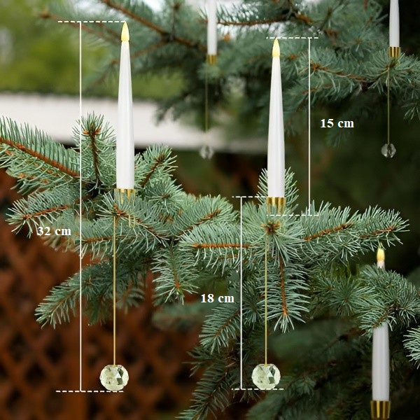 Ces bougies de sapin de Noël sont dotées de crochets dorés et de boules en cristal transparent, se fondant naturellement dans les branches pour un aspect élégant et festif.