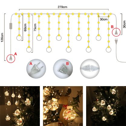 Guirlande rideau à LED avec 10 boules de Noël.