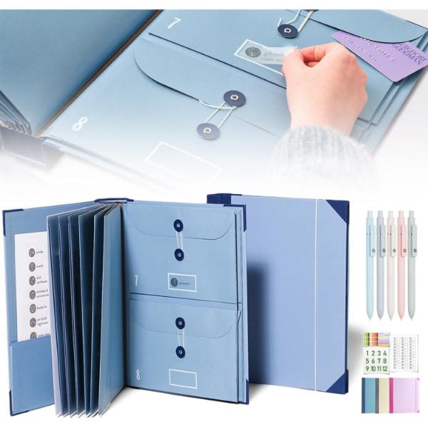 Inclut 10 enveloppes extensibles (6 de taille normale, 4 de demi-taille) pouvant contenir jusqu’à 10 feuilles chacune.